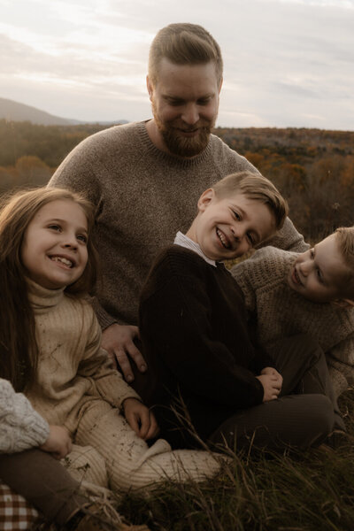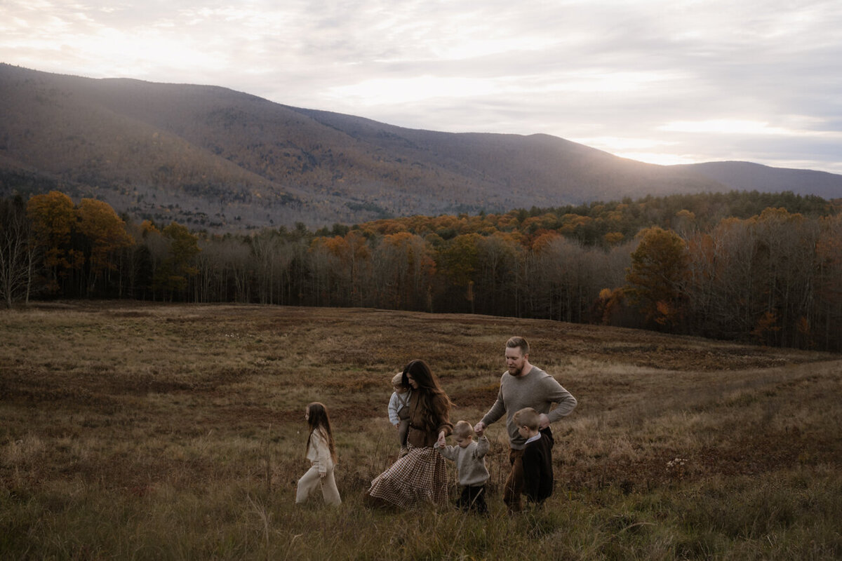 Driving through the Catskills, I spotted a field that felt like it was made for this session. With its wide-open beauty, it was the perfect backdrop for this vibrant family of six to explore, run, pick flowers, and just be themselves. Sessions like these, with four little ones, are always filled with so much life and joy. Allowing the kids to lead the way created such genuine moments, and their laughter and energy made every frame unforgettable