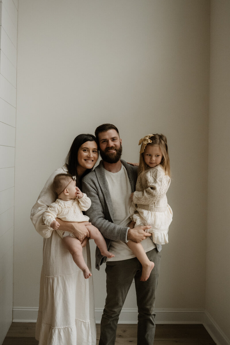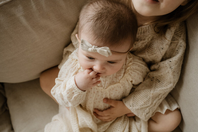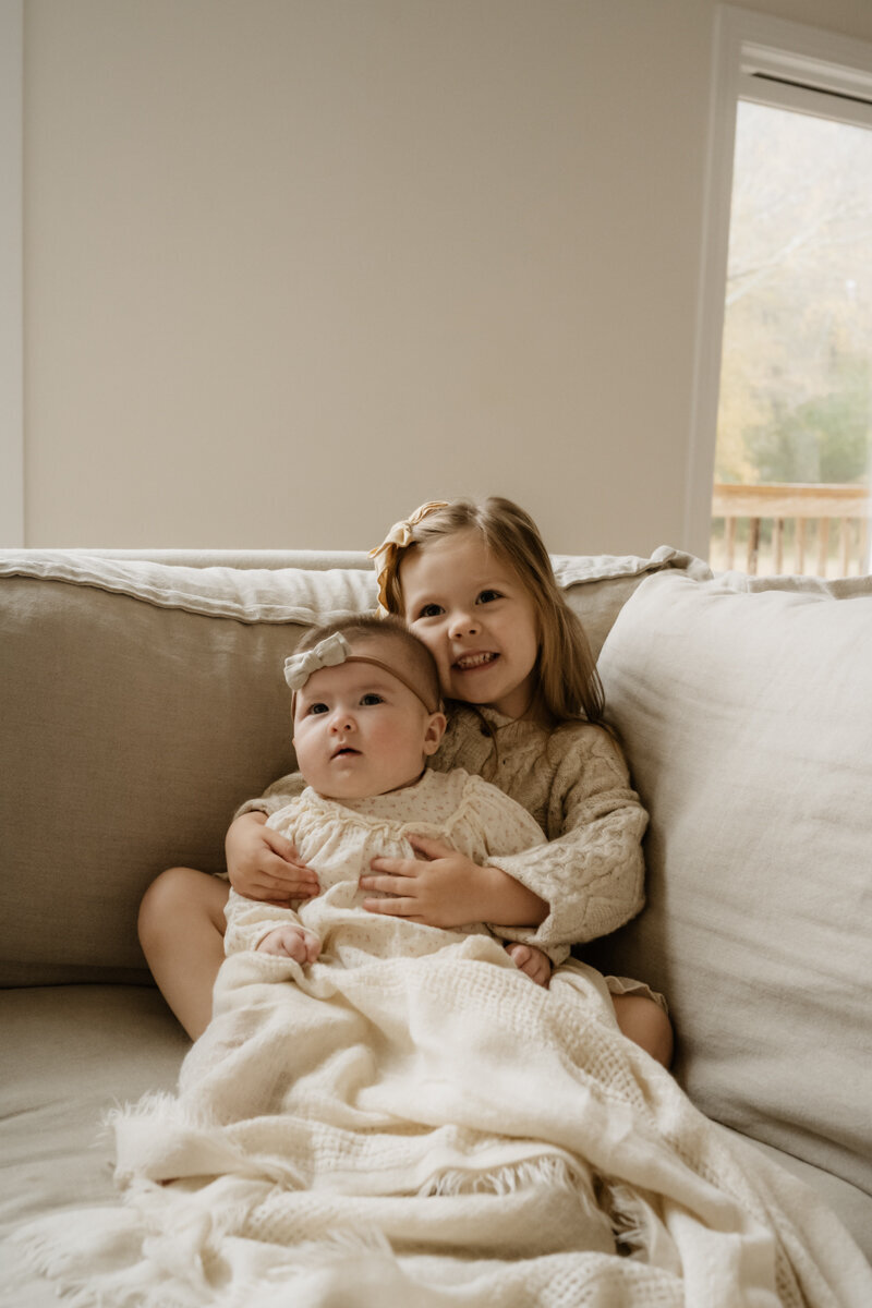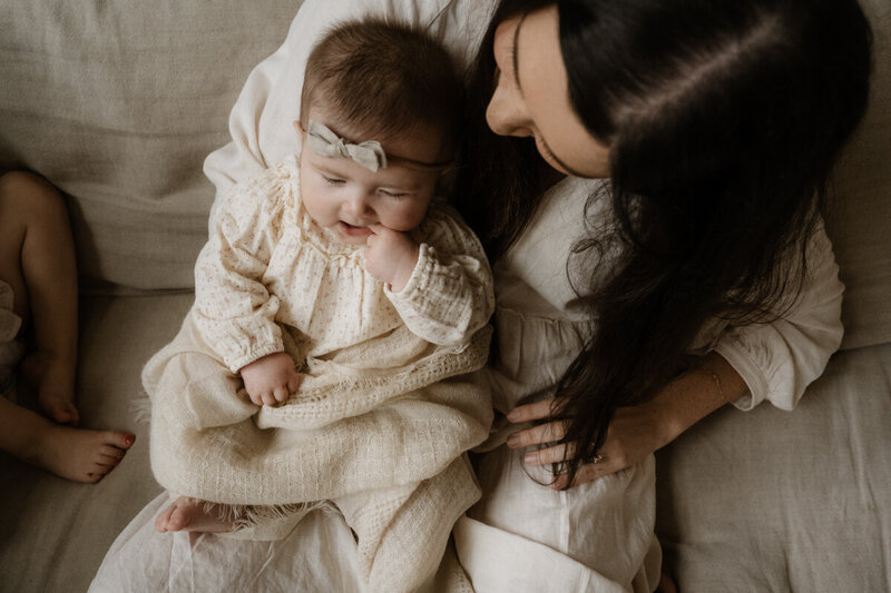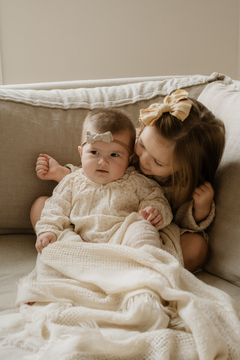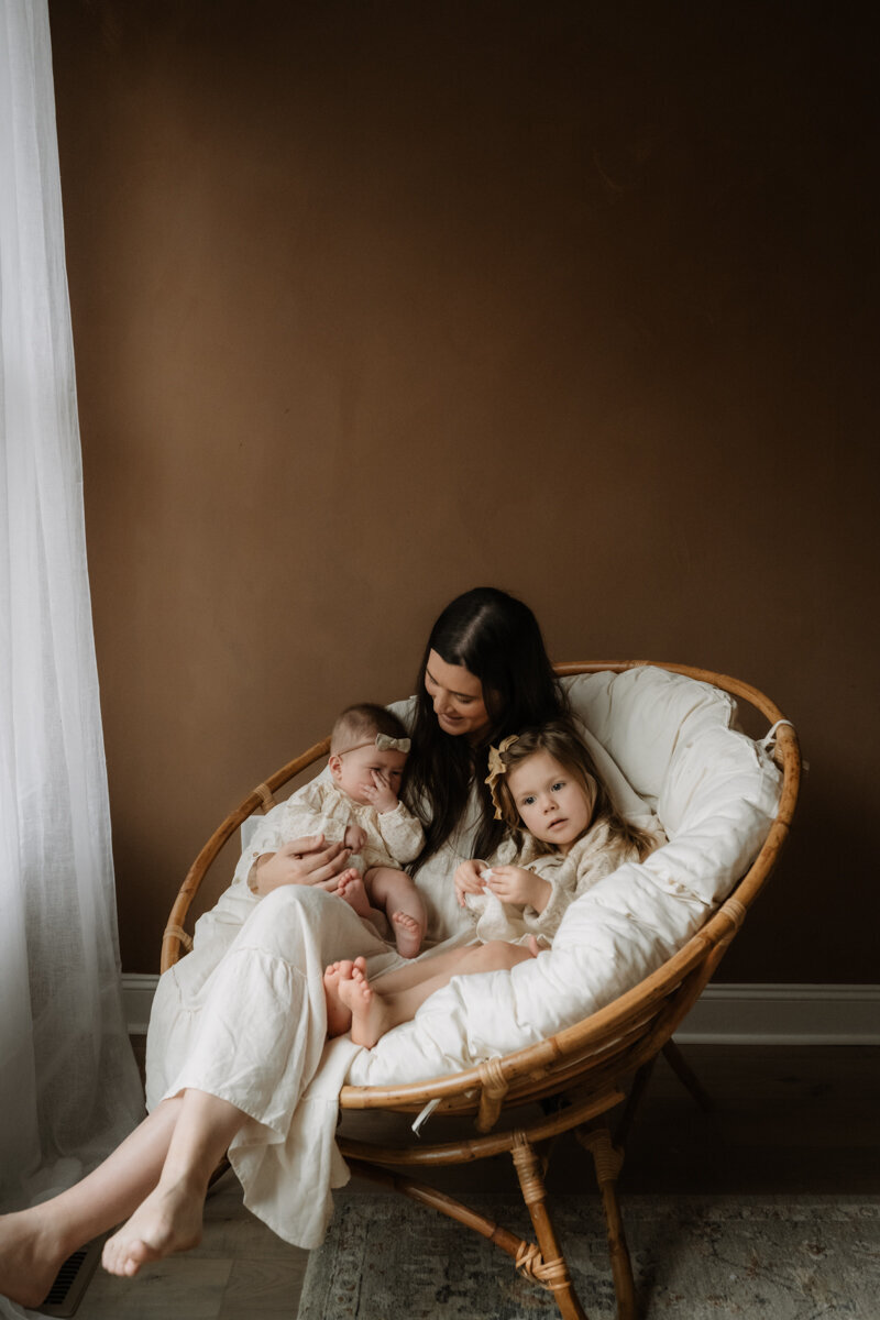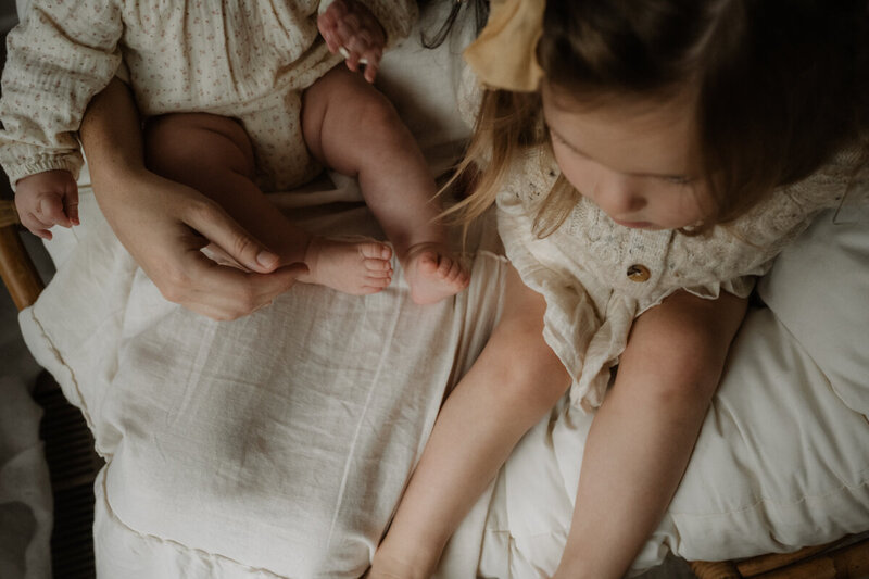 This family session truly left an impression on me. Photographed in my home studio, it was an honor to capture the beauty of their new family dynamic and the incredible bond already blossoming between two sisters. Despite the challenges of transitioning from one child to two—with a toddler and a newborn in tow—this family felt so balanced and connected.. At the heart of it all was Jessica, the mother, whose calm, grounded, and loving presence seemed to radiate through every moment. My hope is that these images reflect the deep love, connection, and joy that filled the studio that day.