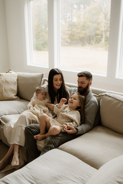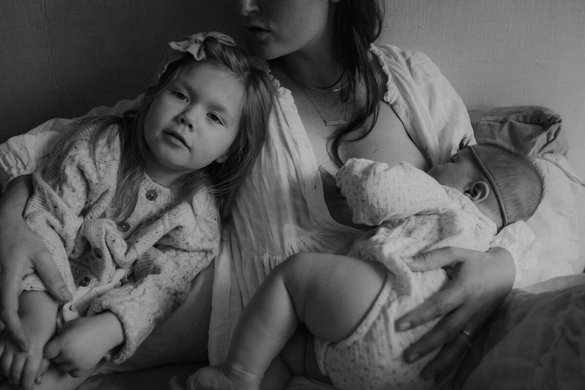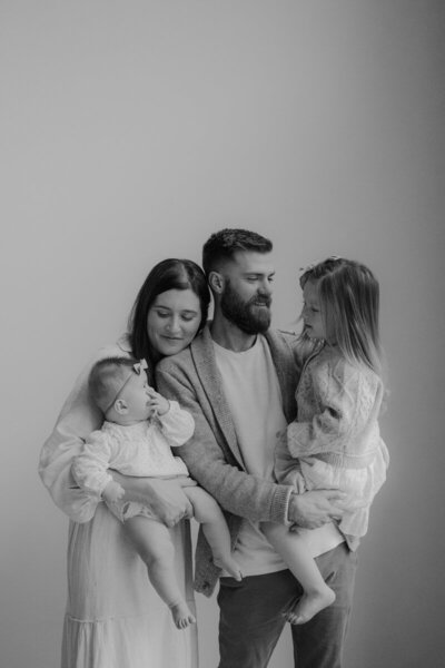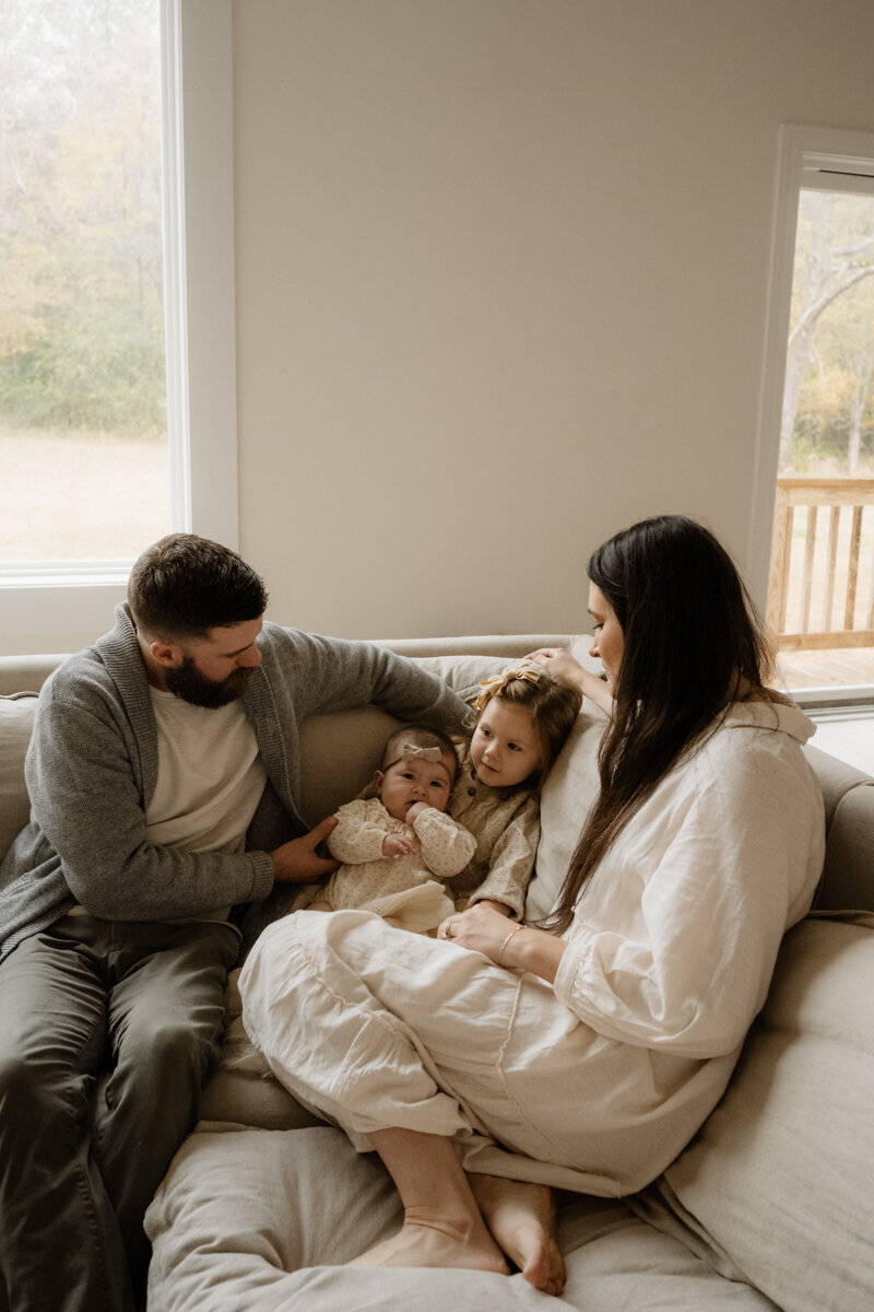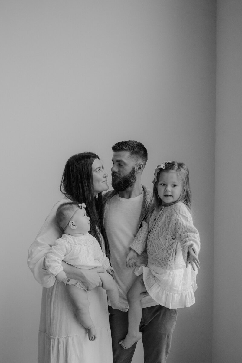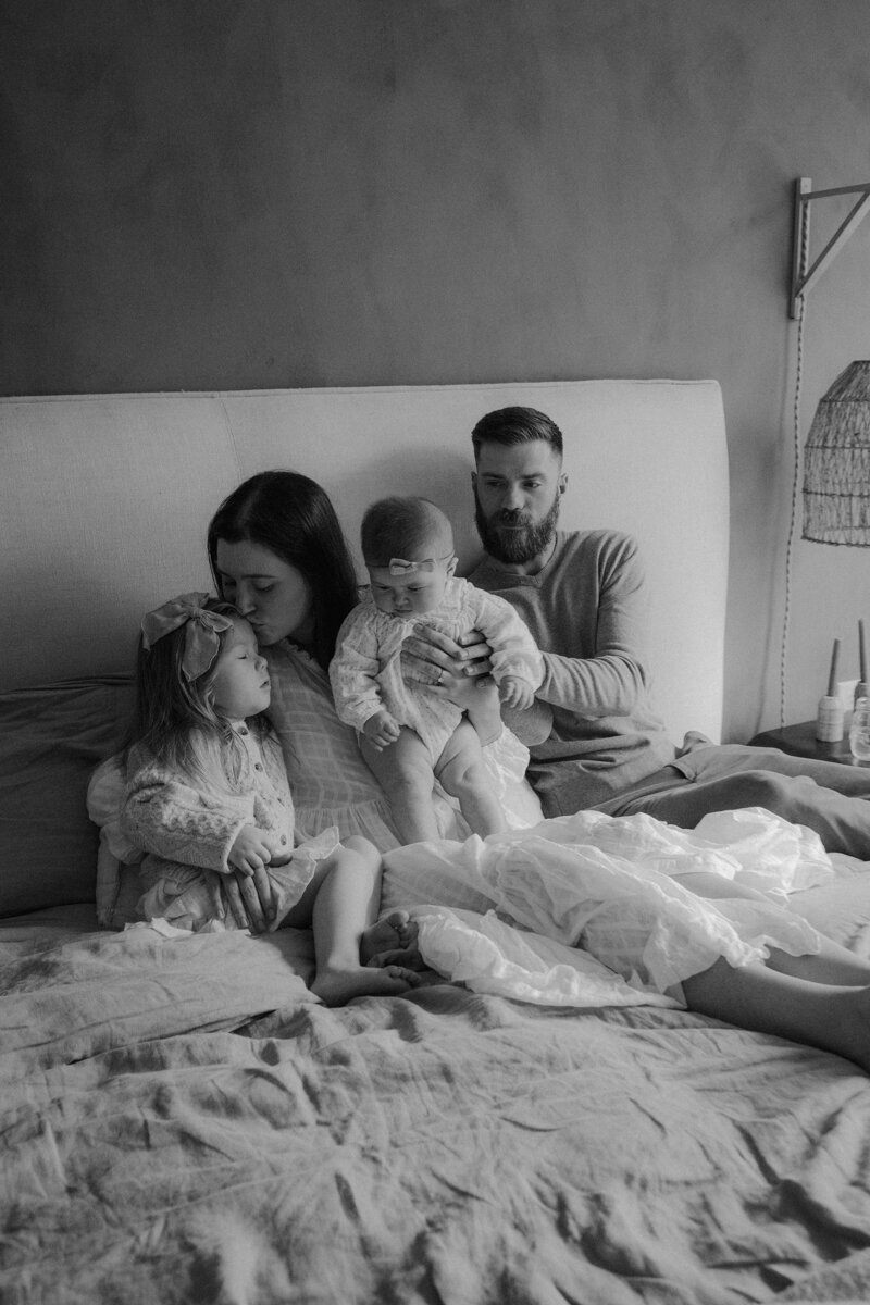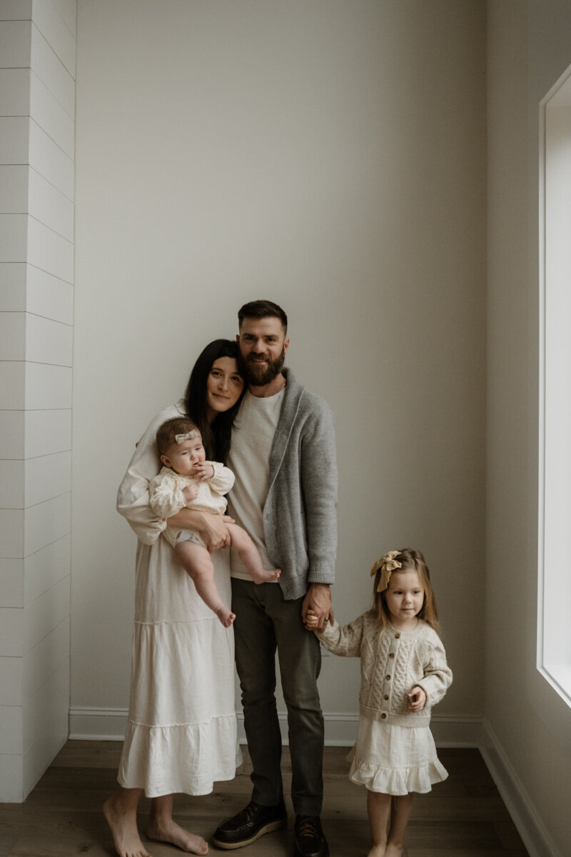 This family session truly left an impression on me. Photographed in my home studio, it was an honor to capture the beauty of their new family dynamic and the incredible bond already blossoming between two sisters. Despite the challenges of transitioning from one child to two—with a toddler and a newborn in tow—this family felt so balanced and connected.. At the heart of it all was Jessica, the mother, whose calm, grounded, and loving presence seemed to radiate through every moment. My hope is that these images reflect the deep love, connection, and joy that filled the studio that day.