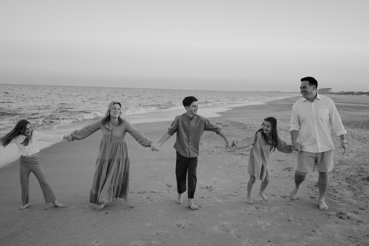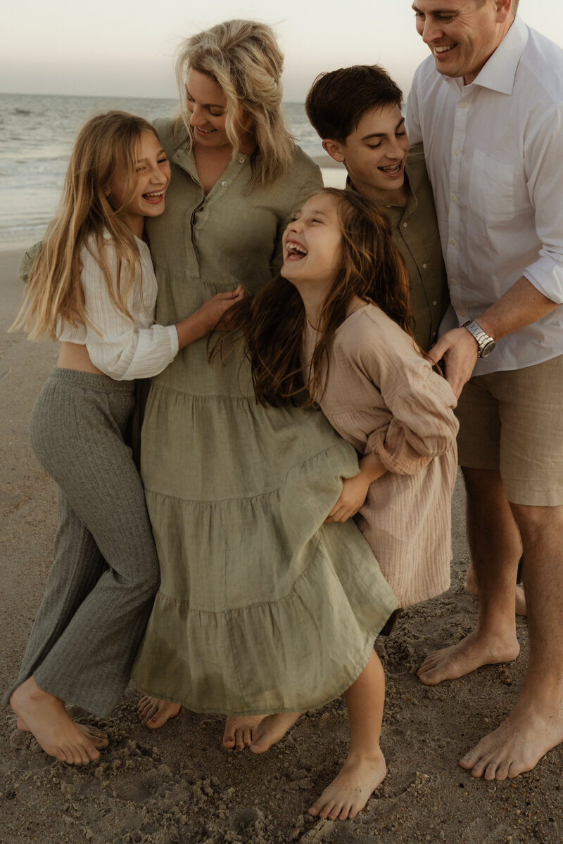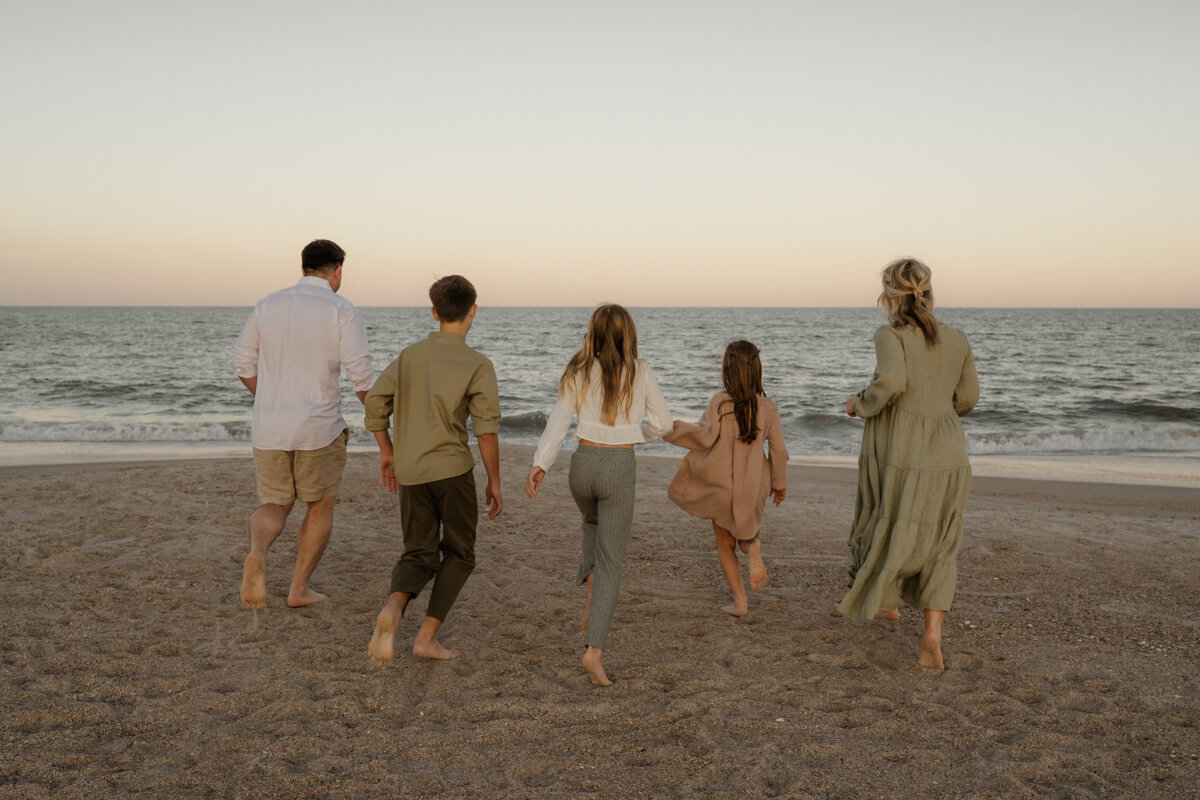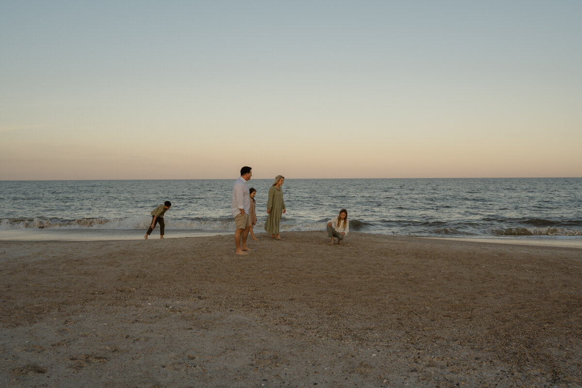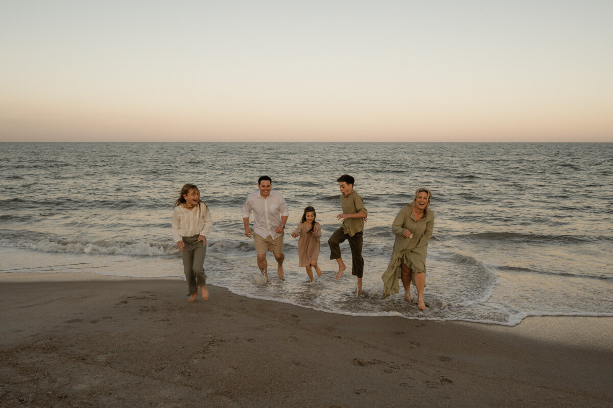 This session is incredibly special to me, as it marked the first time I photographed a family since becoming a mother myself. It was a session filled with laughter, connection, and pure joy. From playing guessing games to running into the waves, to searching for shark teeth in the sand, this session really speaks to the beauty of the simple moments that unfold when being present together.